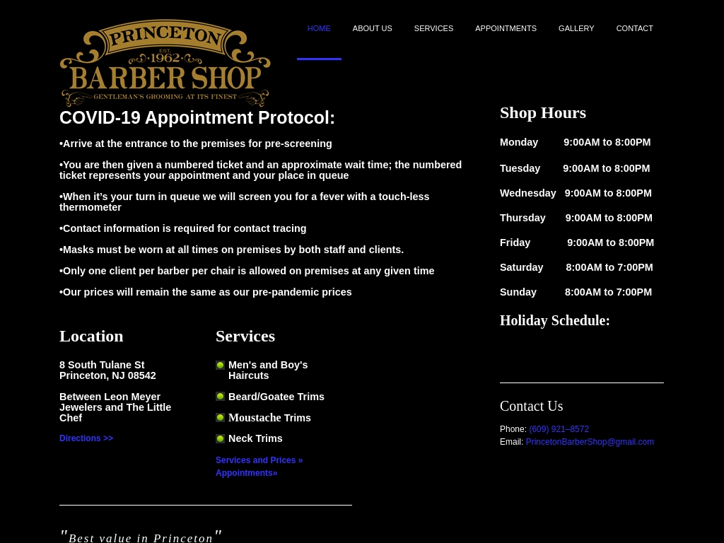 Jimmy is very laid back and friendly and he cuts your hair with care and attention to detail. Both barbers will be working on an appointment only basis for now. Dish about the latest gossip with a stylist at princeton barber shop while you receive a fabulous cut and color. After a long wait we are happy to say, we will be opening monday may 4th! Princeton barber shop has been around since 1962, originally known as rialto.